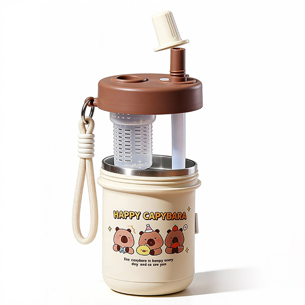 • Integrated Tea Strainer: Includes a removable 304 stainless steel tea filter, allowing users to brew loose-leaf tea directly in the cup.